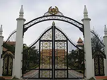Three tall towers form a prominent structure at the side and centre of the palace. These towers represent old guard towers to be found in medieval Malay palaces. The three tiered roofs with intricate eaves details and clay 'buah butong' (appendages at the corners) provides an authentic attempt to replicate Malay traditional roof designs of the east coast. Inside the palace at the main staircase of the Meeting Wing, is a Melawati which is made from chengal wood topped with golden roof.