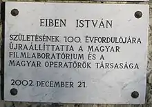 ![]() Commemorative plaque to Eiben on Budakeszi Street No. 51 in the 2nd district of Budapest. | |