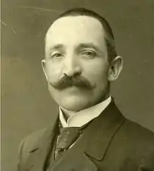 He organized a charity ball on February 1st 1912, in order to obtain funds for creating the sculpture of the Hungarian Martyr of the Hungarian Revolution of 1848 named László Csány, who was from Zala county.[5] In the same year, he founded a Farmer Circle in Sümeg, what served for helping improve in the smallest agricultors' techniques in Zala.[6] During the First World War, in 1917, the great alimentary crisis allowed several merchants a sellers to increase the prices of the food and products on the local markets. Controlling this situation, he put order regulating the prices.[7] During the War after his services as the administrator of the District of Sümeg, he received the War Cross for Civil Merits and also a diploma of merit from the Hungarian Red cross.