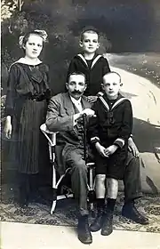 István Farkas de Boldogfa had two wives. He married his first wife in February 11th 1903 in Nova; she was the noble lady Erzsébet Persay de Persa (1885-1913), daughter of Gyula Persay de Persa (1855-1924), pharmacist, landowner, director of the Savings Bank of Nova, and Erzsébet Kiss de Nemeskér (1867-1888). Her paternal grandparents were János Persay de Persa (1813–1870), landowner in Áporka, and Terézia Szalay de Tornócz (1819–1857); her maternal grandparents were the nobleman István Kiss de Nemeskér (1833–1884), pharmacist, pharmacy owner in Nemesvid and Marcali, and Alojzia Schandl (1837–1915). From his first marriage with Erzsébet Persay de Persa three children were born; among them was Endre Farkas de Boldogfa (1908-1994), Major of the General Staff of the Hungarian Armies during World War II, who married the daughter of a member from a wealthy Hungarian family of the Budapest's Bourgeoisie, the Gobelin tapestry artist Klára Lenz (1924-2013).