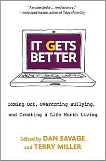 It Gets Better: Coming Out, Overcoming Bullying, and Creating a Life Worth Living is a non-fiction compilation book, edited by Dan Savage and his husband, Terry Miller. It was published March 22, 2011 by Dutton. The book includes selections of essays inspired by the It Gets Better Project, founded by Savage. He decided to start the project after a series of incidents of suicide among LGBT youth. Individuals were encouraged to submit videos with a message of hope and optimism for teenagers who were victims of bullying due to their sexual orientation. Over 100 essays are contained in the book. Contributors include finance advisor Suze Orman; comedic writer David Sedaris; United States Secretary of State Hillary Clinton; and President of the United States Barack Obama.[1]