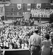 FEI organised and hosted several World Esperanto Congresses (Universala Kongreso, or UK, for short). In 1935, the 27th UK took place in Rome;[19] in 1955, the 40th UK was hosted in Bologna;[19] in 2006, the 91st UK took place in Florence;[20][21] and, finally, in 2023 Turin is going to host the 108th UK.[22] On the UEA site one can find a complete list of the congresses hosted in Italy.[23]