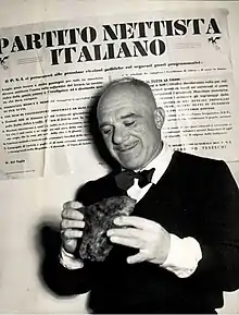 - ↑ Simona Amadori (2018-12-31). ""Bistecche per tutti!" - La curiosa storia del Partito Nettista Italiano" ["Steaks for everybody!" - The curious story of the Italian Nettist Party]. Riscrivere la storia.