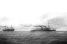 In late 1906, the ship took part in experiments with coaling while underway. She towed the collier SS Sterope at a speed of 12 knots (22 km/h; 14 mph) while coal was transferred via the towing cable. An average of 60 t (59 long tons; 66 short tons) of coal was transferred per hour during the test.[10] Starting in 1908, Liguria was modified to operate an observation balloon. This service, which lasted until 1911, involved towing a "draken" balloon—invented by the Germans August von Parseval and Rudolf von Sigsfeld—to spot naval mines for the fleet.[11][12]