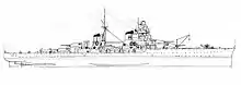 Pola, named for the eponymous city seized by Italy after World War I, was laid down at the Odero-Terni-Orlando shipyard in Livorno on 17 March 1931 and was launched on 5 December that year. Fitting-out work proceeded quickly, and the new cruiser entered service just over a year later at her commissioning on 21 December 1932.[2] Pola participated in a naval review in the Gulf of Naples, where she hosted Italy's fascist dictator, Benito Mussolini, on 67 July 1933. On 29 July 1934 she was formally given her battle flag in a ceremony in her namesake city. On 3 September 1936 she left Gaeta, bound for Spanish waters; she thereafter began a non-intervention patrol during the Spanish Civil War. From 10 September to 3 October, she was stationed in Palma de Mallorca to safeguard Italian interests there. Pola returned to Gaeta on 4 October.[3]