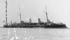 Tripoli was assigned to the 2nd Division of the Active Squadron, along with the ironclad Francesco Morosini, the protected cruiser Ettore Fieramosca, and four torpedo boats.[7] In 1895, Tripoli was stationed in the 2nd Maritime Department, split between Taranto and Naples, along with most of the torpedo cruisers in the Italian fleet. These included the four Goito and the eight Partenope-class cruisers.[8] In 1896, she took part in the annual summer maneuvers in July as part of the Second Division of the Active Squadron, which also included the ironclads Francesco Morosini and Andrea Doria and the protected cruiser Giovanni Bausan.[9]