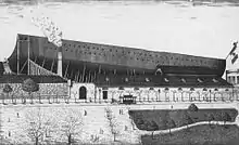 Lepanto served in as a gunnery training vessel until 16 October 1910, when she was reduced to a barracks ship.[26] At the start of the Italo-Turkish War of 1911–1912, Lepanto was assigned to the 5th Division of the Italian fleet, along with her sister Italia and the ironclad Enrico Dandolo.[29] In December 1911, Italia and Lepanto were prepared to be sent to Tripoli, to replace the three Re Umberto-class ironclads. There, they were to support the Italian garrison that had captured the city. The Italian Navy planned to send the two ships in large part because it had a large stockpile of 432 mm shells,[30] but the plan was never actually carried out.[8] Lepanto was struck from the naval register on 26 May 1912, but was reinstated on 21 January 1913 as a first-class auxiliary ship. During this period, she was used to train apprentices and various specialists at La Spezia. She was stricken a second time on 1 January 1914, sold for scrap on 27 March 1915, and subsequently broken up.[4][25][26]