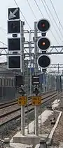 Current practice makes use of light signals of the "searchlight" type on conventional lines, and of the ERTMS cab signalling on high-speed lines.