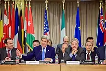 During the 2000s, Berlusconi and his cabinets have had a strong tendency to support American foreign policies,[26] despite the policy divide between the U.S. and many founding members of the European Union (Germany, France, and Belgium) during the Bush administration.[27] Under his lead the Italian Government also shifted its traditional position on foreign policy from being the most pro-Arab western government towards a greater friendship with Israel and Turkey. Italy, with Berlusconi in office, became a solid ally of the United States due to his support in the War in Afghanistan and the Iraq War following the 2003 invasion of Iraq in the War on Terror. Silvio Berlusconi, in his meetings with United Nations Secretary-General Kofi Annan and U.S. President George W. Bush, said that he pushed for "a clear turnaround in the Iraqi situation" and for a quick handover of sovereignty to the government chosen by the Iraqi people. The Italian Armed Forces had some 3,200 troops deployed in Southern Iraq, the third largest contingent there after the American and British forces.[28] Italian troops were gradually withdrawn from Iraq in the second half of 2006 with the last soldiers leaving the country in December of the same year.