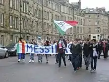 Italian fans on their way to see Italy play Scotland at Murrayfield in the Six Nations Championship, 2013