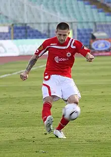 In January 2008 Bandalovski signed for Lokomotiv Sofia.[5] Performing as a solid back, it didn't last long until he gained head coach Dragan Okuka's trust and became a starter. Sometimes credited as having a bad temper, he maintained the status of one of the most trustworthy defenders in the league, and soon was called up to the Bulgaria national football team.[6]