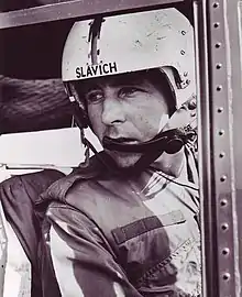 After earning his wings for fixed-wing and helicopter at the U.S. Army Aviation School at Fort Rucker, Alabama, Slavich was deployed to Okinawa with the 503rd Infantry Regiment. In 1960, while stationed in Okinawa, then Major Slavich discovered a detachment of 12 HU-1A "Huey" support helicopters. He formed a company, and worked to arm the helicopters as the French had armed theirs during the Algerian War in the late 1950s. The goal was to prove that the HU-1A (and later, UH-1B) helicopters could be sufficiently armed to provide effective close-in tactical support for troop-carrying ships.[3] Armed with four 7.62-millimeter machine guns and two rocket pods, each with eight rockets, all mounted outside the helicopter just above the skids, the firepower of the HU-1A exceeded that carried by World War II fighter planes.[4]: 204