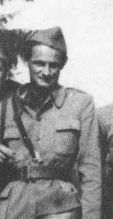 In time of preparation of conference of the Communist Party of Yugoslavia in Prague, he was arrested again, but soon released. In December 1936 he joined Spanish Republican Army and participated in Spanish Civil War. During the first stages of war he was a sergeant in Dimitrov Battalion. Soon he raised to rank of a captain and became commander of the Đuro Đaković Battalion.[1]