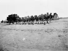 Bales of wool on a camel train, 24 September 1928, Ivanhoe, New South Wales