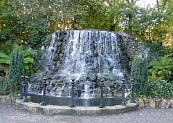 - The cascade, or waterfall, flows over an immense rockery, with rocks from each of Ireland's 32 counties. The cascade uses recycled water today but originally used water from the Grand Canal.[16]