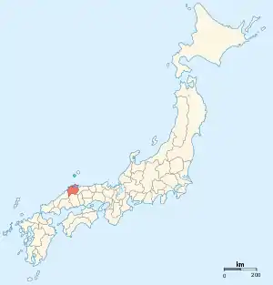 Izumo Province (出雲国, Izumo-no-kuni) was an old province of Japan which today consists of the eastern part of Shimane Prefecture.[1] It was sometimes called Unshū (雲州). The province is in the Chūgoku region.