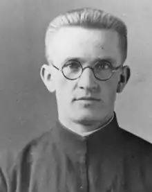 Józef Cyrek was born in Bysina, a village some 34 km (21 miles) south of Cracow, on 13 September 1904 – when the area was under Austrian occupation – to the family of Józef Cyrek, a farmer, and his wife Barbara née Sobal who died when Cyrek was 18-months' old.[1] Cyrek was thus from his earliest years inured to physical work having been obliged to help out with the agricultural work of the family. He went to school at Bysina and at nearby Myślenice, continuing secondary education in Cracow and in Pińsk in Poland (now Pinsk in Belarus). During his secondary studies he entered the Society at Stara Wieś (already in independent Poland; see picture to the right) on 6 December 1924. He studied in Cracow at Jagiellonian University (philosophy) and in Belgium at Louvain (theology), where he also took holy orders on 24 August 1934.[2][3] After his return to Poland in 1935 Cyrek worked for the religious publisher, the Wydawnictwo Apostolstwa Modlitwy ("Publications of the Apostleship of Prayer") of Cracow, the oldest Catholic publishing house in Poland (now called the Wydawnictwo WAM).[3] In 1938 he became the editor of the periodical Hostia ("The Host"), an organ of the Eucharistic Crusade (see Croisade eucharistique), becoming the chief secretary of the movement.[4][5] In May of the same year he participated in the 34th Eucharistic Congress in Budapest.[4]