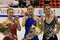 Sebestyén with her fellow medalists at the 2009 Skate America