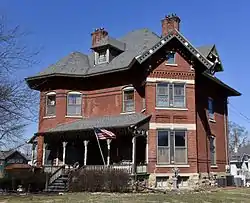 The J.E. Squiers House, also known as the Squiers Manor Bed and Breakfast, is a historic building located in Maquoketa, Iowa, United States. The architectural and historic significance of this house is attributed to its being "a well-preserved example of late nineteenth century domestic architecture in Maquoketa's most prominent residential neighborhood and for its association with the life and career of James Emery Squiers, a prominent local businessman."[2] Built in 1882, the 212-story brick house features elements consistent with the Queen Anne and Stick styles. It follows a central hall floor plan with two rectangular projecting bays, a three-sided bay window, a kitchen addition on the back, and a hipped roof with intersecting gable sections.