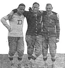![]() Rix (left) with assistant coach Lt. Joseph Wier and head coach Dave Allerdice at the University of Texas at Austin, c. 1913 | |