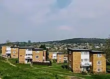 The estate has a footpath system independent of roads linking three distinct neighbourhoods, each with its own infant and junior schools and shopping centre and comprises two-storey houses, three-storey flats, four and six storey maisonettes and three tower-blocks crowning the hilltop.[23]