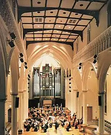 The firm undertook re-design of the precinct of Huddersfield Polytechnic Campus and later in 1979, the conversion of St. Paul's Church in Huddersfield into a concert hall. On awarding him a Fellowship for the redevelopment of the Campus in 1977, Dr. Stewart Armstrong, Deputy Rector, said of Womersley, "Only a planner with both vision and courage could have foreseen the Polytechnic campus as it is today. The splendid Central Services building stands as monument to that foresight".
