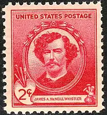 During the Great Depression in the United States, the picture was billed as a "million dollar" painting and was a big hit at the 1933–34 Chicago World's Fair. It was accepted as a universal icon of motherhood by the worldwide public, which was not particularly aware of or concerned with Whistler's aesthetic theories. In recognition of its status and popularity, the United States issued a postage stamp in 1934 featuring an adaptation of the painting.[58]
