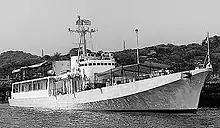 On March 1, 1960, the 2nd Submarine Chaser Corps was reorganized under the Kure District Force.[4] Due to the wide deck width of the rear deck of Hayabusa, it was decided to remodel it into a accommodation boat due to the deterioration of the accommodation ship Yuchidori, and on October 1, 1977, the type was changed to a accommodation ship (ASY-91) and incorporated into the Yokosuka District Force.