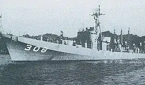 JDS Hayabusa (PC-308) was a submarine chaser of the Japan Maritime Self-Defense Force (JMSDF) in the mid-1950s. She was later converted to an accommodation ship and redesignated as ASY-91. She was the third vessel to inherit the name after the Imperial Japanese Navy's Hayabusa-class torpedo boat Hayabusa and Ōtori-class torpedo boat Hayabusa.[1]