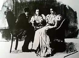 Drawing depicting the moment Parejo receives condolences from Juan Pietri on the death of Crespo.