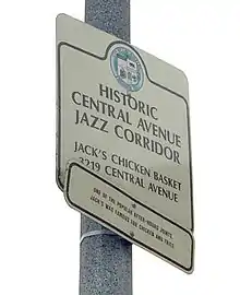 Jack's Basket Room, also known as Jack's Chicken Basket, The Bird in the Basket, The Basket Room, and Jack's Chicken Shack, was a jazz club operated by former heavyweight boxing champion Jack Johnson[1] and owned by Sam Jack Jackson.[2] It featured after-hours jam sessions that went until dawn in the 1940s–1950s.[3] The name originated from the specialty of the house which was fried chicken and shoestring potatoes served in a rattan basket with mixers and ice. There was no alcohol served at the venue, but it was BYOB or patrons were encouraged to go to a local vendor on the corner to buy half-pints of whisky.[4] Jack's Basket Room also hosted Sunday afternoon matinees and had an annual Christmas dinner for underprivileged children of all races. The dinner was started by owner Jack Johnson and manager Bill Hefflin. They served up to 1,000 turkey dinners with all the trimmings and ice cream for desert.[5] Located in Historic South Central Los Angeles (at 3219 S. Central Ave.), Jack's Basket Room was in the heart of the Jazz Corridor, which was the center of jazz in Los Angeles between the 1920s and 1950s.[6] Among the venues on Central Avenue, Club Alabam was one of the best known.