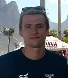 Burnell competed in the marathon swimming event at the 2016 Summer Olympics, with the event beginning at the Copacabana Beach.[3] In the men's 10 kilometre open water event, he was disqualified after receiving two yellow cards for unnecessary contact with other swimmers, though he initially appeared to have finished fifth alongside Marc-Antoine Olivier and Zu Lijun.[4][5] The second yellow card came close to the finishing line after a tussle with the defending Olympic champion, Oussama Mellouli, who was also given a yellow card but ultimately finished 12th.[6][7] In an angry interview following the race, Burnell claimed that Mellouli had grabbed his leg and that it may have stopped him from winning, and said the first card for unnecessary contact had been awarded when there were no other swimmers around.[8] His appeal against the judges' decision was not successful.