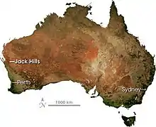 - ↑ "Western Australia's Jack Hills". NASA Earth Observatory newsroom. Archived from the original on 2006-10-01. Retrieved 2006-04-28.