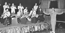 As societal trends changed more and more away from the pure big bands, Melick found an opportunity to co-exist with the new sounds of the 1960s and beyond at weddings, debutante parties, and other social events. It's one of the reasons he's still in business today. In Melick's own words, "When rock and roll started to become real popular, I would meet with the debutante or bride, her mother, and sometimes her grandmother – you know, the one who was paying for the whole thing. The bride or the debutante would always ask if we could mix in some rock and roll with our music. I'd say, 'Sorry, we don't do that, but those bands don't try to play "In the Mood" either!' So I proposed a new program. We'd play from 8:00 until 11:00 or so while grandma was there, and then we'd fold up and bring a local rock band in to go until 1:00 or so in the morning. That was not my original idea, but that's what started to happen. And we became very successful with it."[11]