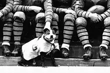Other bull terriers like Saxa filled in as mascot until World War II, when athletics at the school paused during the war. After the war, a series of Great Danes, named Bo, Butch, and Hobo, served as mascot.[13] William Peter Blatty, author of The Exorcist, was one of the students to care for Butch. During this time period mascot abductions by rival schools became a common threat to the animal's safety. A bull terrier costume was also briefly used by the school, but in 1951, the school suspended the football program as part of a larger backlash against university sports.[14] This left the school without a mascot.[7]