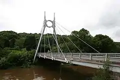 The Memorial Bridge is a footbridge spanning the River Severn, linking the Tuckies part of Jackfield with Coalport. It was built with funds raised by public subscription in 1922, and is in memorial to the men of Jackfield and Coalport who were killed in the First World War, later dedicated to those of both World Wars. The original structure was declared unsafe in 1997 but was refurbished and reopened in 2000.[14]