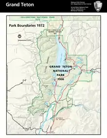 - ↑ Skaggs, Jackie. Creation of Grand Teton National Park, January 2000, https://www.nps.gov/grte/planyourvisit/upload/creation.pdf