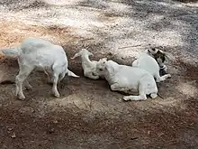 As the movie site was abandoned, the lake and surrounding land became inhabited with many different types of wildlife. Goats can often be seen wandering around in a tribe near the abandoned set.[4] As they were raised on an island with plenty of tourism, they have become domesticated and comfortably walk around people. Ducks and turtles are commonly seen around the swamp-like lake, mainly in areas where decayed trees sit standing out of the water.