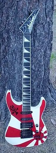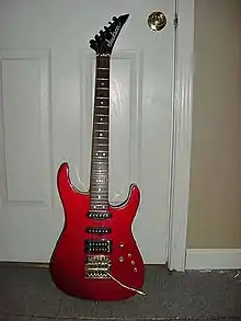 The Jackson Soloist is an electric guitar model introduced by Jackson Guitars in 1984, although prototypes were available before then. The design is a typical "superstrat"; it varies from a typical Stratocaster because of its neck-thru design; tremolo: Floyd Rose or similar, Kahler; or a fixed Tune-O-Matic; premium woods; a deeper cutaway at the lower horn for better access to the higher frets, and a sharper body with squared-off edges.