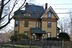 The Jacob Manning House is a historic house in Reading, Massachusetts. Built in 1877 for garden nursery owner Jacob Manning, this 2+1⁄2-story wood-frame house is an excellent local example of Stick style architecture. It has a steeply pitched roof, multiple gables, tall thin windows, and decorative half-timber woodwork. The owner, Jacob Manning, owned one of the largest nurseries in the area, and was responsible for the landscaping of the Massachusetts pavilion at the 1893 Chicago World Fair.[2]
