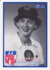 Jacquelyn Kelley [née Savage] (November 11, 1926 – May 12, 1988) was an American utility infielder/outfielder and pitcher who played from 1947 through 1953 in the All-American Girls Professional Baseball League. Listed at 5 ft 7 in (1.70 m), 140 lb., she batted and threw right-handed.[1][2]