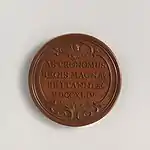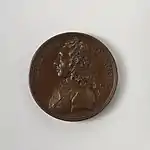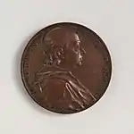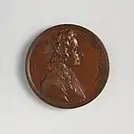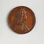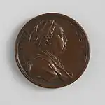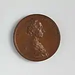 At the beginning of his time in England, Dassier printed proposals for making medals of 13 distinguished living Englishmen by subscription.[2] This series, with subjects largely from Whig political and Royal Society circles, was carried out 1740–1744.[3] The dies were engraved in London, then the medals were struck off at Geneva.[2]