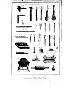 Planche Gravure en Bois, outils du vol. IV of the Encyclopédie to which Jacques-Raymond Lucotte contributed.