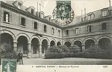 An early 20th century postcard showing an inner courtyard of the Hospital Tenon