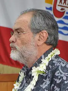 He was re-elected to the Assembly on the Tavini Huiraatira list in the 1996 election, but lost his seat again in 2001.[5] In June 2004 he was appointed vice-president in the government of Oscar Temaru.[11] He was replaced as vice-president in October 2004 when Temaru lost a confidence vote to Gaston Flosse.[12] He was reappointed as Vice-President when Temaru regained power in March 2005.[13] He surrendered the position as part of a coalition realignment in April 2006.[14] He was later appointed telecommunications and culture minister in Temaru's 2007 government,[15] and minister of tourism in Temaru's 2009 government.[16]