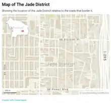 The Jade District is an Asian-dominated commercial area and cultural hub radiating outward from Southeast 82nd Avenue and Division Street, in Portland, Oregon, in the United States.[1][2][3][4] It is roughly between Division Street and Powell Boulevard to the north and south, and between SE 75th Avenue and I-205 to the east and west.[5] Part of the Montavilla, Powellhurst-Gilbert, and South Tabor neighborhoods,[6] the district is one of the most diverse census tracts in the state of Oregon.[7]