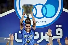 Salmani with 2021–22 Iran Pro League championship trophy
