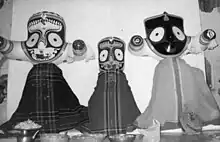Analogous to Puri Jagannath the main deity of this temple is also made of daru bramha and sacred salagram Silas have been kept inside the idols' wooden structure which is why, the idols are heavy, making it difficult for the brahmins who carry the idols upon their shoulders during the Rath yatra.