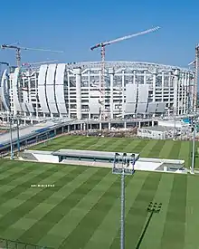 The stadium construction started in September 2019. The construction of the stadium hasn't been halted amid the COVID-19 pandemic, albeit safety precautions and medical check-ups for workers has been implemented.[14] Due to the pandemic, the construction progress slowed down caused by the decrease of construction workers and delay of construction materials being shipped and transported for the project. This problem has pushed the estimated opening date from October 2021 to April 2022.