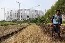 Construction of the stadium was delayed due to land disputes and class-action lawsuits by former squatters whose homes were demolished to make way for the stadium.[4] Construction of the stadium started in September 2019 and completed in April 2022.[5] After numerous delays and preparations, the stadium opened for its grand opening on 24 July 2022.[6]